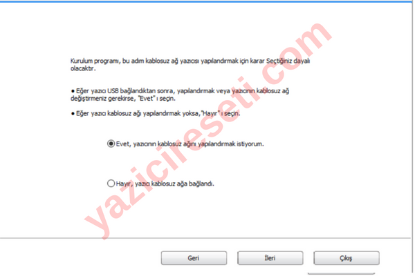 - Yazıcıyı ilk defa kuruyorsanız seçeneği değiştirmeden ileri butonunu tıklayın.