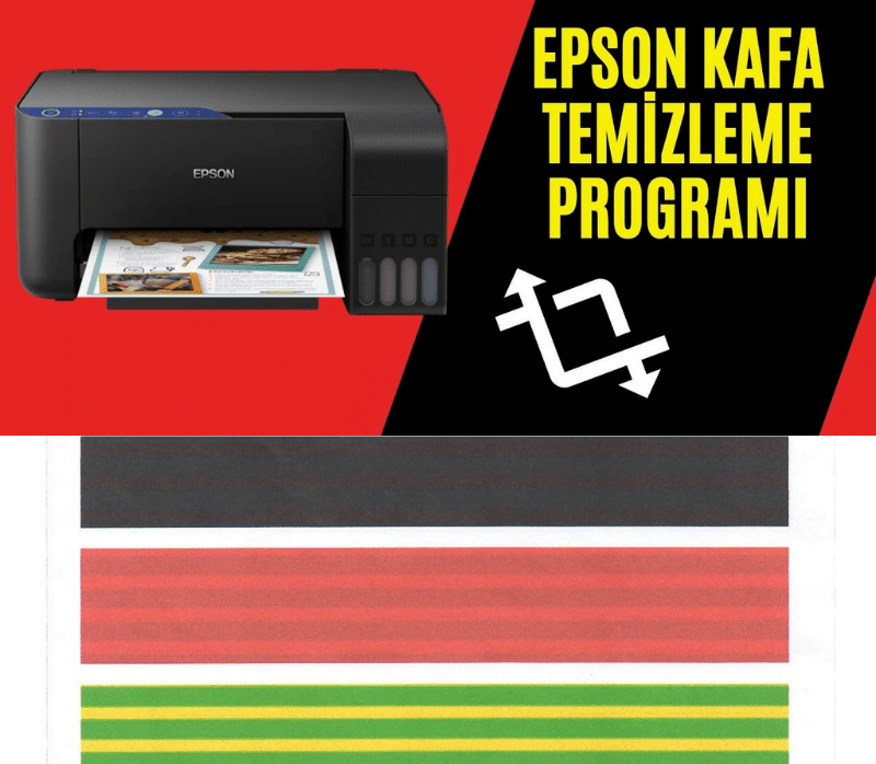 Epson Yazıcılarda Kafa Temizleme Nasıl yapılır? Epson Kafa temizleme programı baskı kafası temizleme işlemi soldaki görselde olduğu gibi çıktılar silik veya kesik kesik çıkıyorsa yapılan bir işlemdir. Epson Kafa Temizleme Programı ile basitçe temizleme işlemini yapabilirsiniz. Bu işlemi 2 kere deneyip sonuç alamadıysanız daha fazla denemeyin kafanın sokulup temizlenmesi gereklidir. Epson Kafa Temizleme Programı Ücretsiz olarak indirebilirsiniz.